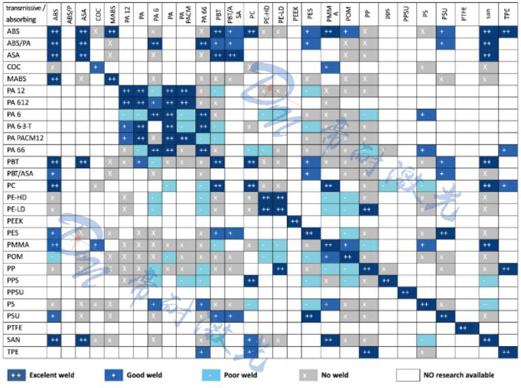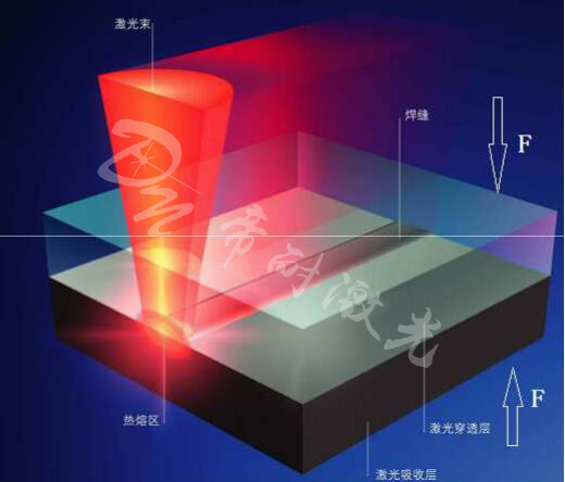 塑料激光焊接原理:通過壓力將兩個(gè)待焊接塑料零部件結(jié)合在一起,將一束紅外激光定位于待粘結(jié)部位,激光束透過上層透光材料,被下層材料吸收,吸收的激光能量轉(zhuǎn)換成熱能,由于兩層材料被壓在一起,熱能從吸收層傳導(dǎo)到透光層上,使得兩層材料熔化并結(jié)合。同時(shí)由于材料本身的熱膨脹擴(kuò)張產(chǎn)生內(nèi)部壓力,內(nèi)部壓力與外部壓力共同作用確保了兩部分的堅(jiān)固焊接。對(duì)于產(chǎn)品本身是不吸光的下層材料,需要添加吸收劑進(jìn)行處理。